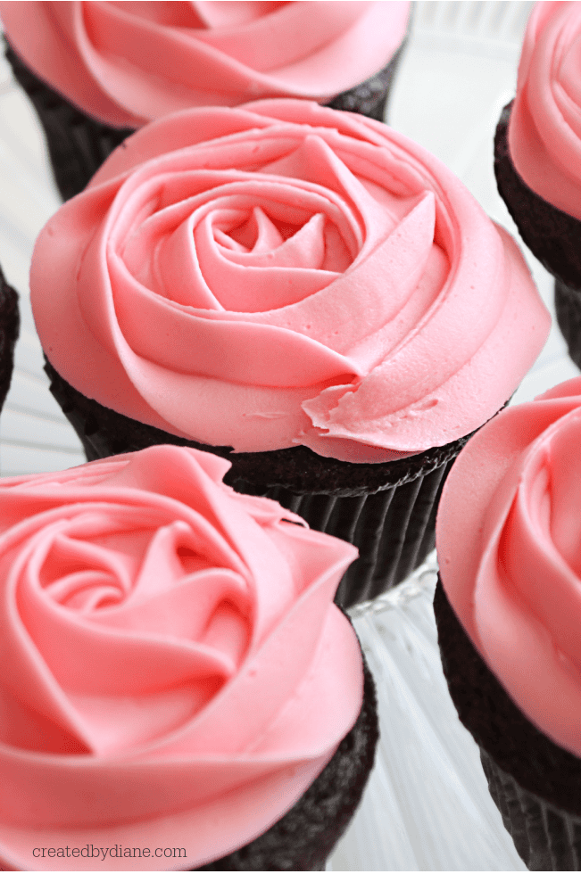 Be sure to take a look at the how-to video I made so that you could easily replicate these cupcakes with rose frosting yourself. It will help you master these beauties!