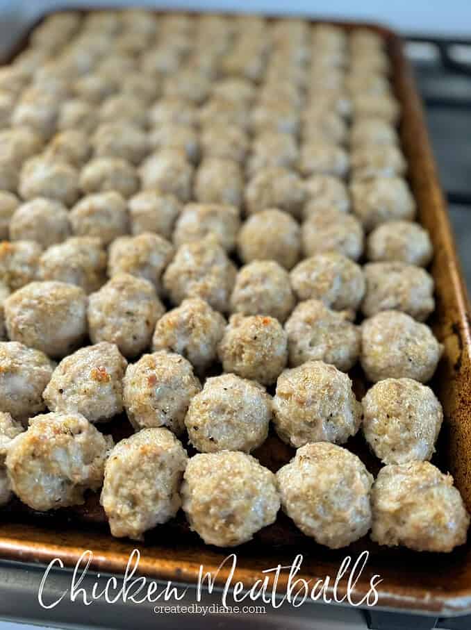 We just chicken meatballs the other day. Only difference; I do add 1 can of Very well drained can of ( mild) Ro-Tel to my chicken balls.