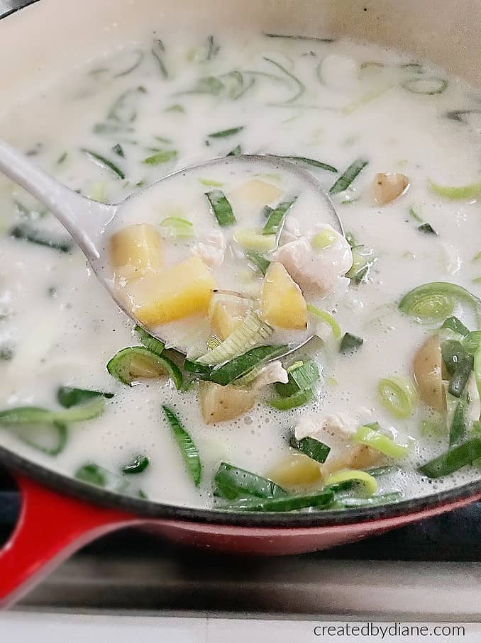 Oh, scooping out a big bowl of hot, delicious, creamy potato leek soup with chicken is just what a cool day calls for!