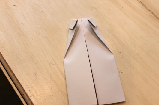 finally fold the bottom of the paper and tuck it under the collar you created and press it flat.