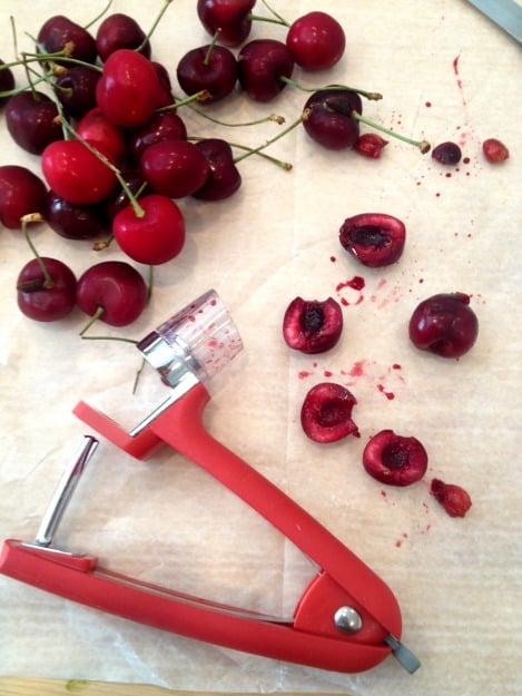 THIS is the Cherry Pitter I use to remove the pits easily from cherries (and olives too) it easily removes the pits and helps reduce the splatter with the clear guard.