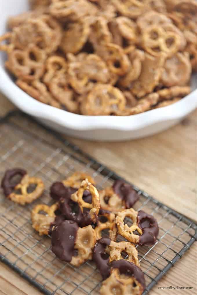 - 1 cup chocolate, melted- if desired to dip pretzels or drizzle chocolate over pretzels