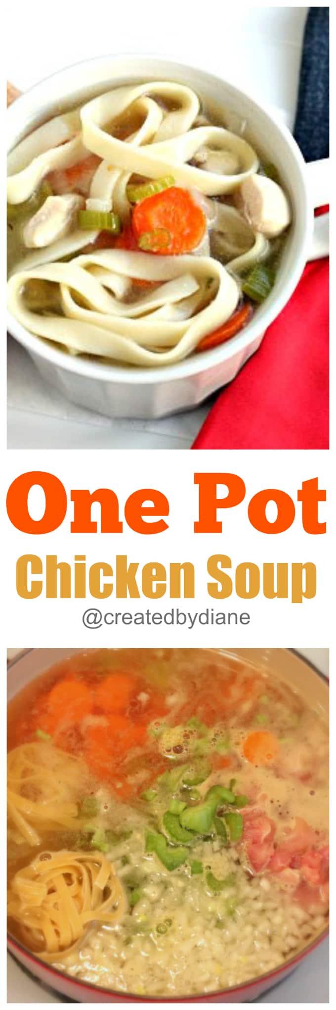 To make this One Pot Chicken Soup recipe low-carb, simply leave out the noodles and add chopped cauliflower pieces or riced cauliflower to the broth during the last few minutes of cooking. Cauliflower cooks quickly and it will give you more vegetables and help fill you up with fiber.
