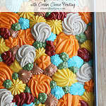 Make swirls and dollops, create… rose shapes, pumpkins, or any pattern to combine the colors and textures to make the cake extra pretty.