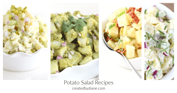 Next, let’s take a gander at Potatoes! Yes you know you can make potato salad – but potato salad goes beyond just mayo! I have a few favorites that I switch out to keep my taste buds singing: