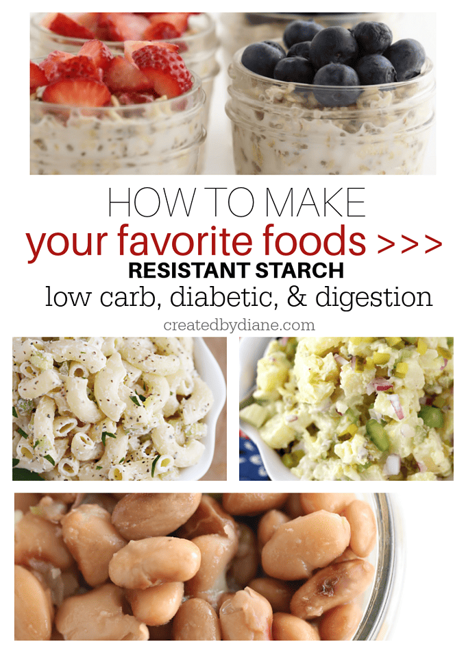 the more ive dug into this resistant starch thing since i became diabetic and found out about resistant starch creation,, i have found even more ways to use it….even bread if baked and chilled can create the starch along with french fries..you know frozen fries are usually precooked partially anyway so thats a plus! the deeper i dig the more carb foods can be cooked chilled and cold or reheated and dont raise blood sugars ….win/win