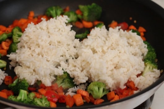 • Pre-cooked and cooled rice makes for the best fried rice. Making the rice a day ahead I find is easiest. If you make the rice when you will be preparing this dish, cook rice according to package and then place on thin tray spread out an place in refrigerator to cool rice off before adding it to the rest of the dish.
