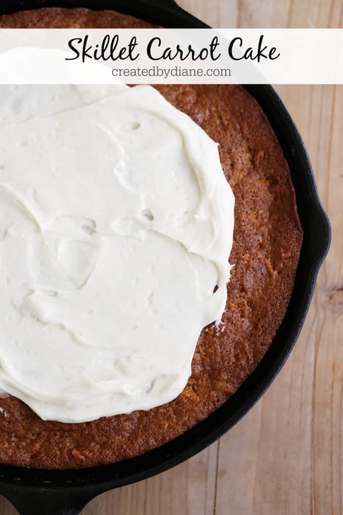 Simplifying dessert, that was the goal here and it worked. This Skillet Carrot Cake is not only delicious it’s a very simple carrot cake recipe that can be made effortlessly, perfect any time… and then the cake is topped with a simple cream cheese tasting frosting, but there is no cream cheese in it, so it’s easy to whip up with at a moments notice!