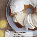- In a large bowl with a mixer add all the ingredients in the order they are listed. Cake mix, flour, sugar, salt, water, egg whites, butter, sour cream, oil, almond, vanilla, and lemon extract.