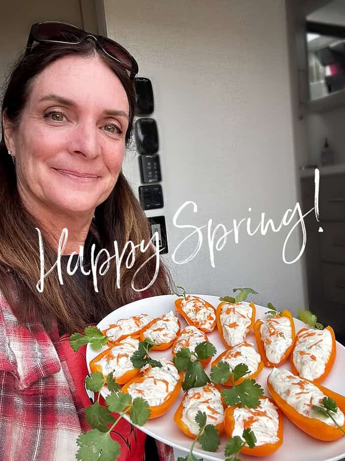For spring this veggie cream cheese is getting a fun twist by piping it into mini sweet peppers to look like little “carrots.” It is simple, festive, and instantly makes your appetizer table feel special without any extra stress.