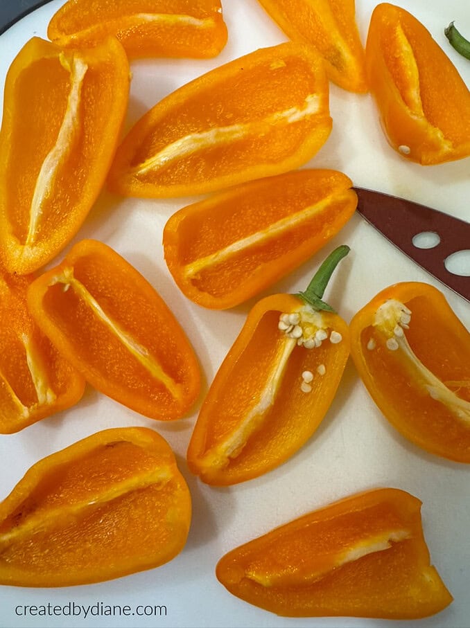 • 6 small orange peppers (small sweet peppers with pointed ends) Any color pepper will look cute!